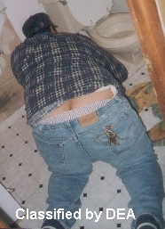 It has been learned that the many remodeling products at the house has not been without the pain of--CRACK(pure white I might add). The photo you see was stolen from the DEA's file. It is a photo of a raid to stop this abuse of crack. Although unidentified, it is beleived to be the back side of none other than the current president, Mark Bromwich! No charges were filed, but Mark has been put under the custody of his wife who is now responsible for dressing him.