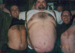 The recent popularity of professional wrestling has also sparked the resurgence of Sumo. And who would be Delta Chi's best choice? BOSSMAN--but of course. Here the Delta Chi Alum Brian Smith (aka Bossman) poses while on his tournament tour to win a chance to go up against Japan's best. A couple of inspiring wrestlers pose with him (Boss is in the center). Northern Iowa's claim to the largest Delta Chi ever remains untouched.