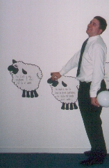 As his contemporaries know, Troy Errthum has always claimed he was a virgin(by choice). It was also know that for some reason, Troy was disappointed during his iniation that there was no hazing (a standard at Delta Chi). The photo here was found among several documenting Alum Kirk Dimler's recent wedding. It exposes Mr. Errthum for all he is--A SHEEP RAPER! To make matters worse, an anonymous source stated the picture was taken in a church basement. Whatever happend to decency? [EDITORS NOTE: Let thee who is willing to stone thy self be the first to throw stones at thou.]