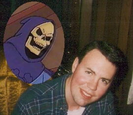 Dan Skelton has long been called Skeletor. Originally, it was thought this came from his name. But if you look at this picture with the real Skeletor's image, you see a striking resemblence. Several cultists are now worshipping Dan as the real thing, but he insists he is not. Childhood friends report that Skelton had a model Castle Grey Skull as a child and also 'killed' his He-Man action figure in the microwave. The FBI is sure to be following this one.